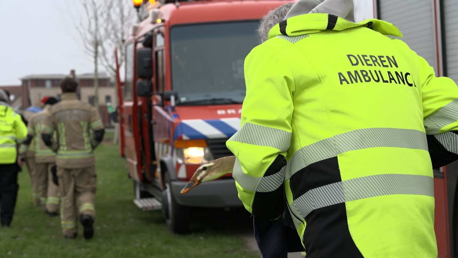 Eend in nood, brandweer schiet te hulp!
