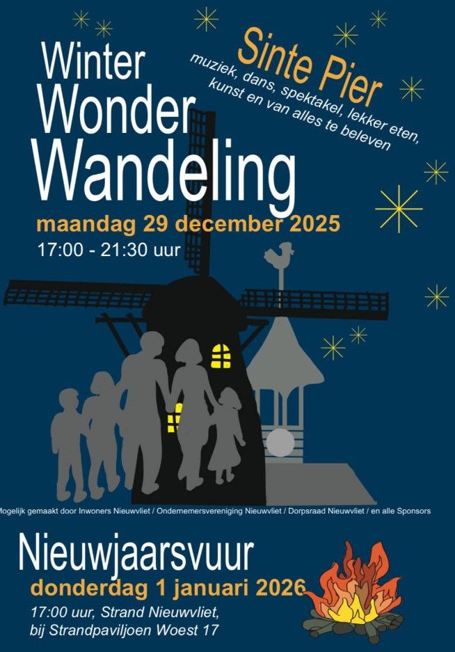 Maandag 29 december kun je meelopen met een schitterende Winter Wonder Wandeling op het strand bij Nieuwvliet. Muziek, dans, spektakel, lekker eten, kunst en nog veel meer. Het begint om 17 uur bij Woest 17.