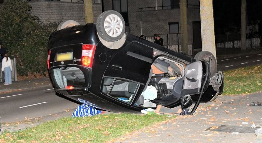 Bij een rotonde op de Laan van Othene in Terneuzen is donderdagavond een auto op zn kop belandt. Er raakte één persoon gewond.