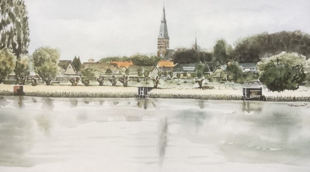 De komende week bezoeken we van maandag tot en met vrijdag vijf locaties. Eén van de plaatsen waar we komen is herkenbaar aan deze aquarel van kunstenaar Maurits Schoenmaker uit Terneuzen.
