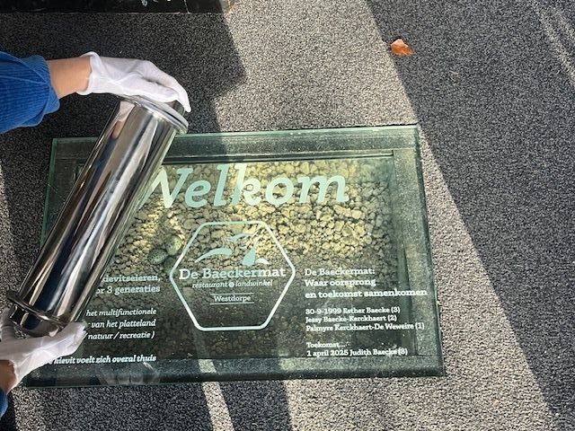 “Deze tijdscapsule heeft de Baeckermat gekregen tijdens haar 25 jarig jubileum”, zegt Judith Baecke, organisator van het toekomstproject. "25 jaar geleden was de Baeckermat ontstaan vanuit een samenwerking waarin natuur, landbouw en recreatie samen verbonden werd. Over 100 jaar kunnen de mensen van 2125 zien hoe wij hier toen dachten, hoopten en droomden. Dat is een prachtig geschenk aan de toekomst.”