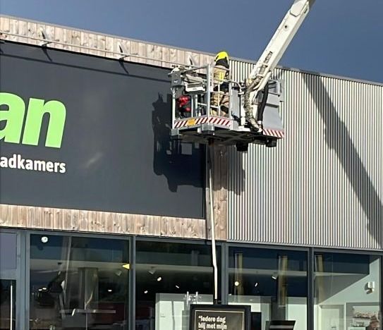 In Hulst is bij een filiaal van een woonwinkel een stuk gevelbekleding losgeraakt, de brandweer werd ingezet om de situatie veilig te stellen.