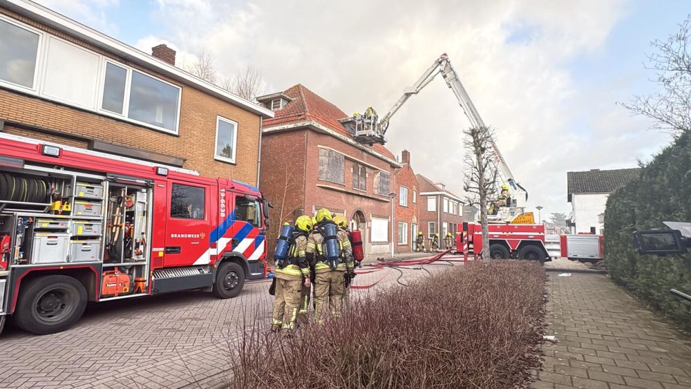 De woning staat al jaren leeg, ook de tuin ligt er verwaarloosd bij. Door de hoge begroeiing achter het huis kost het de brandweer moeite om het vuur onder controle te krijgen. Inmiddels is het dak van de loods ingestort. "We zijn nog steeds aan het blussen en proberen overslag naar andere panden te voorkomen", meldt Zeeland Veilig.