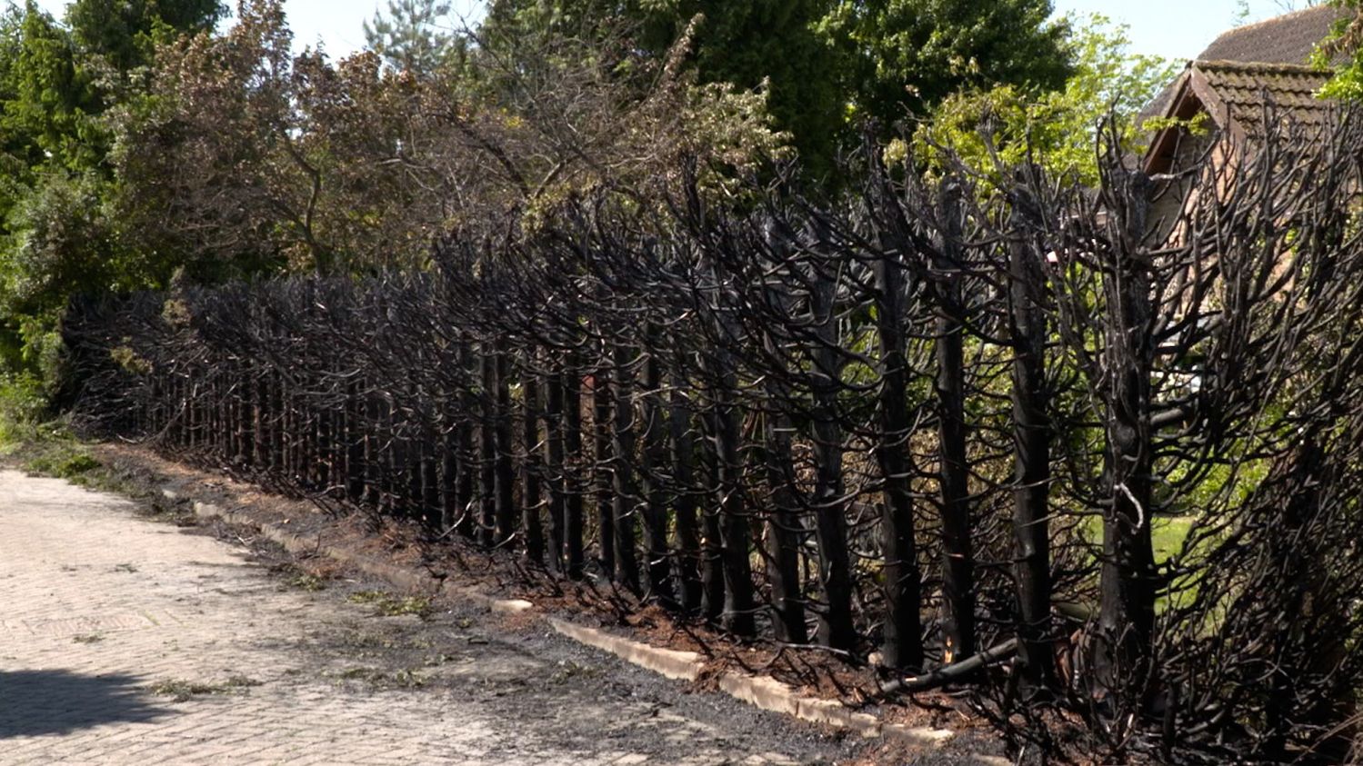 Coniferenhaag brandt af in Hengstdijk