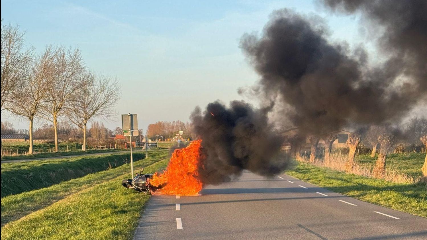 Motor in brand Hoogstraat Sluis
