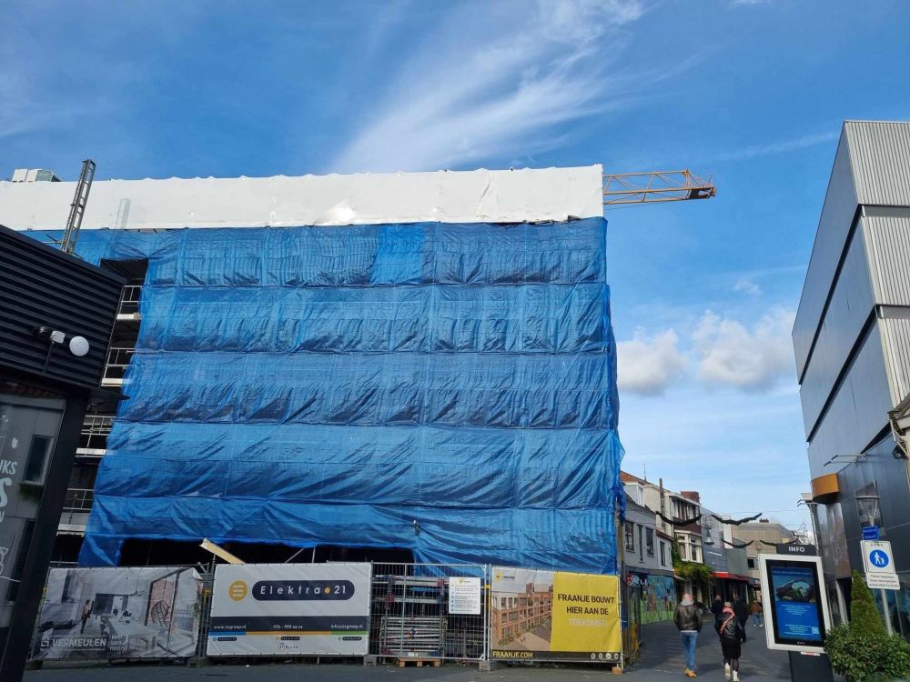 Het gebouw is nog gehuld in blauwe doeken, maar daarachter wordt stevig doorgewerkt. Inmiddels is het hoogste punt bereikt. Bouwproject Kop van Noord is qua ruwbouw grotendeels afgerond en nu start de afbouwfase. Het bereiken van het hoogste punt werd feestelijk gevierd met toekomstige bewoners en andere betrokkenen.