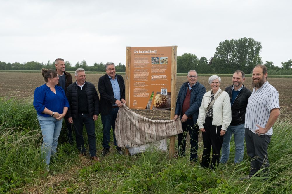 Wil je weten wat er op het land staat en welke gerechten je ermee kunt bereiden? In heel Zeeuws-Vlaanderen staat een aantal nieuwe borden langs de landerijen met informatie over wat er groeit en bloeit. Langs fietsroutes in het westen van Zeeuws-Vlaanderen stonden al van deze borden, maar ook die worden vervangen. Onder het genot van flink wat regen - goed voor de gewassen - werd dinsdagmiddag een bord bij Emmadorp onthuld.