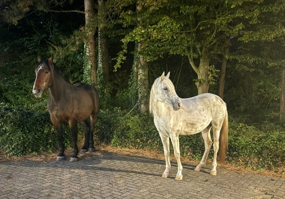 De wijkagenten in Hulst hebben in de nacht van zondag op maandag een bijzondere melding gekregen. Twee paarden waren namelijk ontsnapt en liepen rond op de N290 en de Parallelweg West. Het heeft even geduurd, maar uiteindelijk wisten agenten de paarden te vangen en mee te nemen naar het politiebureau, waar ze opgehaald zijn door de eigenaar.