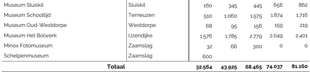Scrollend door de lijst met twintig musea in Zeeuws-Vlaanderen, kom je bekende en minder bekende musea tegen. Wat dacht je van Witte's Museum voor Fotografie en Radio in Axel met een privéverzameling oude fotocamera's en radio's? Of van Museum Sluiskil over de geschiedenis van het dorp, toch goed voor zo'n 800 bezoekers per jaar? Bekijk hier de volledige lijst en bezoekerscijfers van de afgelopen jaren in Zeeuws-Vlaanderen, samengesteld door Erfgoed Zeeland: