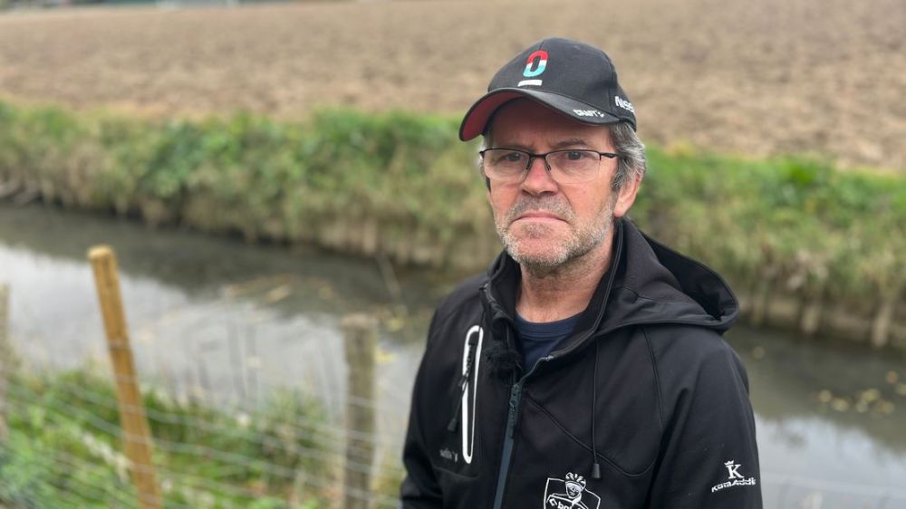 "Je ziet de vinnen nog bewegen, maar dat zijn de laatste stuiptrekkingen", zegt Jean Paul Moens over de tientallen dode karpers die levenloos in zijn sloot drijven. Sommige spartelen nog een beetje of happen naar adem: "En als er niets aan gedaan wordt, sterven ze allemaal."