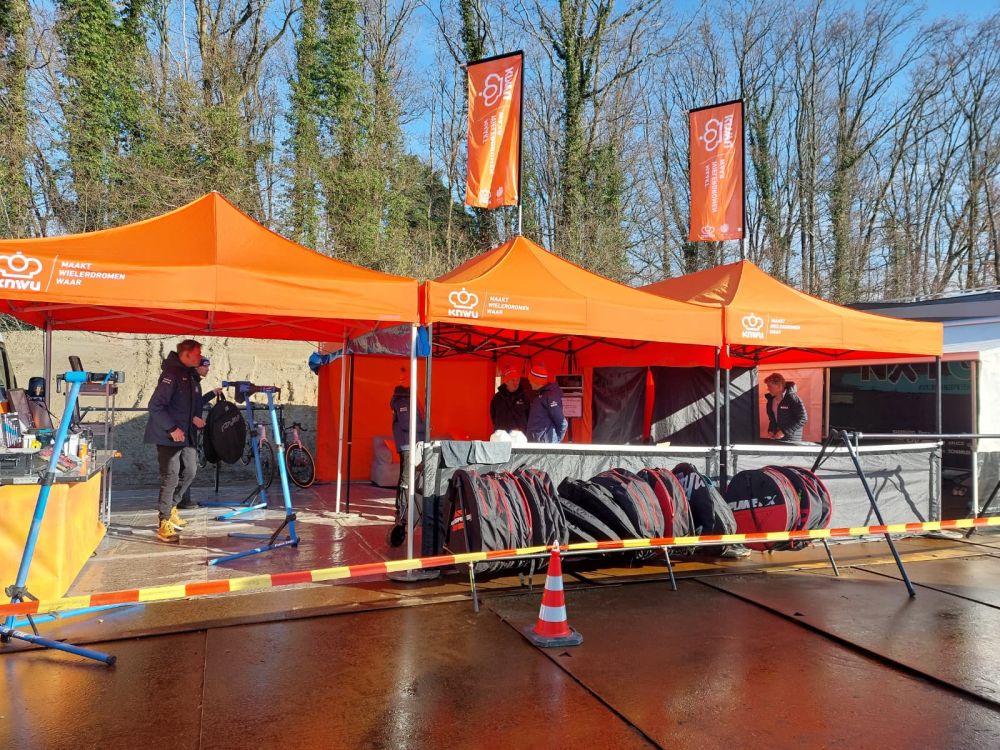 Verslaggever Marianne van Belleghem nam ook even een kijkje achter de schermen op het terrein van de Blaauwe Hoeve waar de teambussen geparkeerd staan.