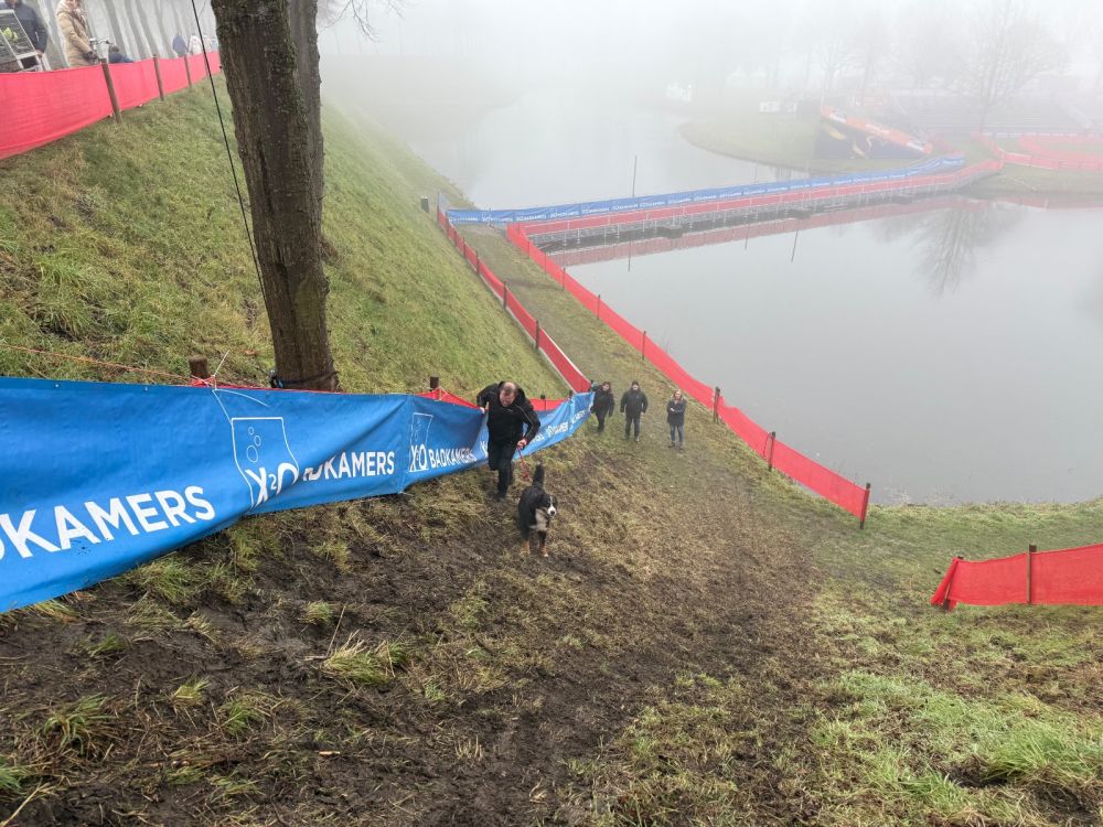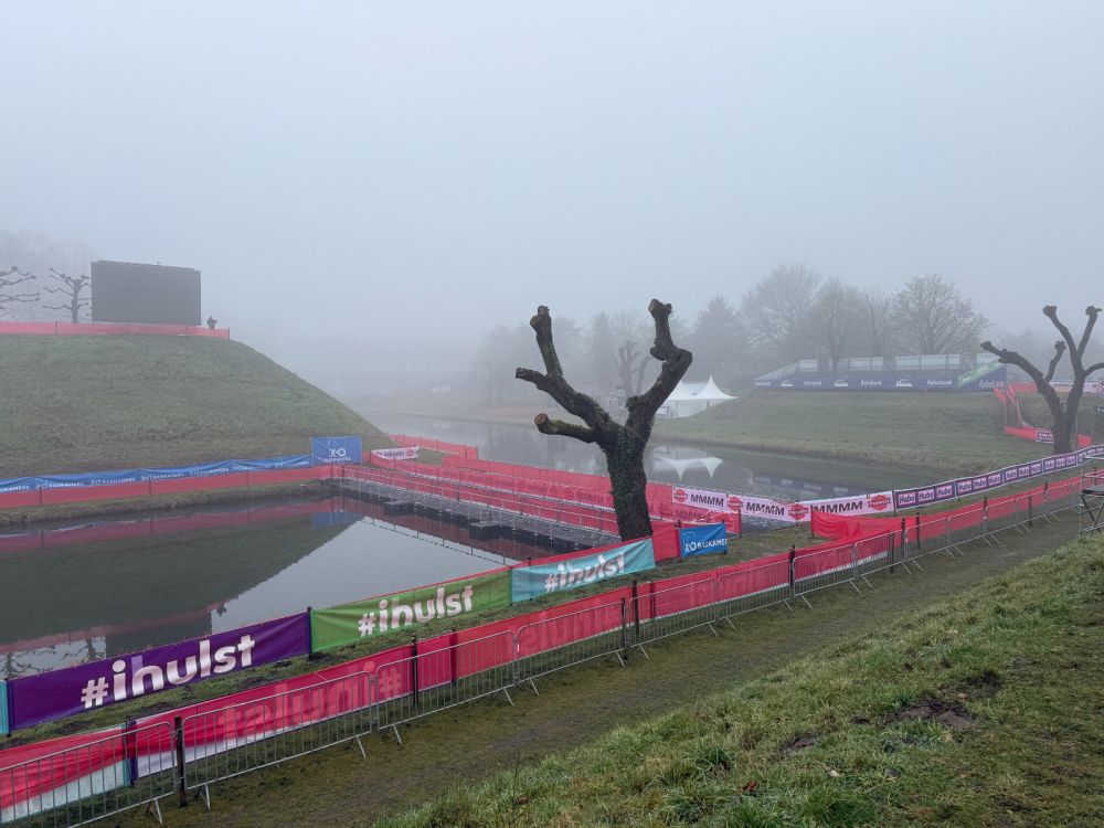 Het is mistig in Hulst, dus ver kun je niet kijken. Toch komen de echt nieuwsgierige mensen even een kijkje nemen op de plek waar vrijdag, zaterdag en zondag een groot aantal wereldtoppers gaat proberen de regenboogtrui te veroveren. Wandelaars met de hond en fietsers die eens willen testen of er een crosstalent in hun verloren is gegaan.